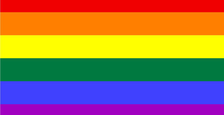 In 1979, the flag was modified again. When hung vertically from the lamp posts of San Francisco’s Market Street, the center stripe was obscured by the post itself. Changing the flag design to one with an even number of stripes was the easiest way to rectify this, so the turquoise stripe was dropped, which resulted in a six stripe version of the flag – red, orange, yellow, green, blue, and violet.