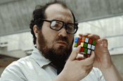 It opens on an army of Honda workers building a sculpture of its hybrid engine using thousands of Rubik cubes.