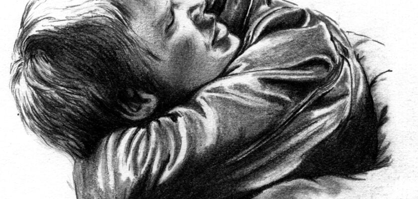 Well, I’ve finished it quicker than I thought and I’m pleased with it. I loved the mood of it and also the light and shadow, not so much the details. Brian’s leather-jacket was quite some work but also fun to draw!