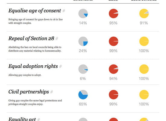 Click above to shows the amount of support we have received from each party on important LGBT issues. Please support http://mygayvote.co.uk by visiting their website or following them on twitter @mygayvote
