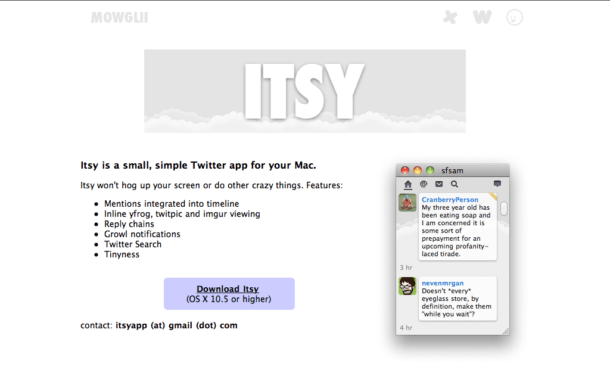 Itsy is a twitter client that just runs in the background with a tiny memory footprint and through Growl lets you know about update from people you are following on Twitter.