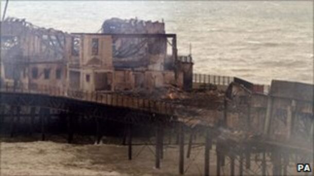 A passing police patrol and local people raised the alarm at 0100 BST after seeing a small fire, but the pier was rapidly engulfed in flames.