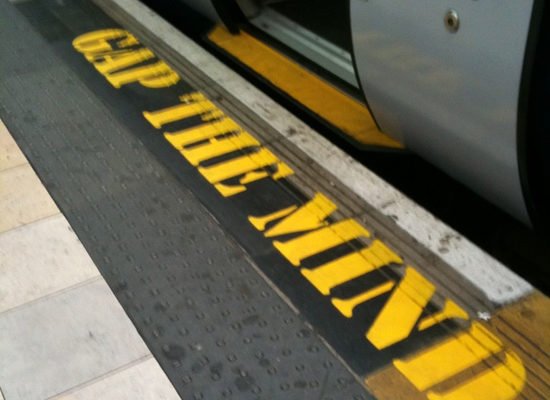 Supplied with suitable stencils for ‘Mind the Gap/Step’, the local painters managed to produce ‘Step the Gap Mind’.