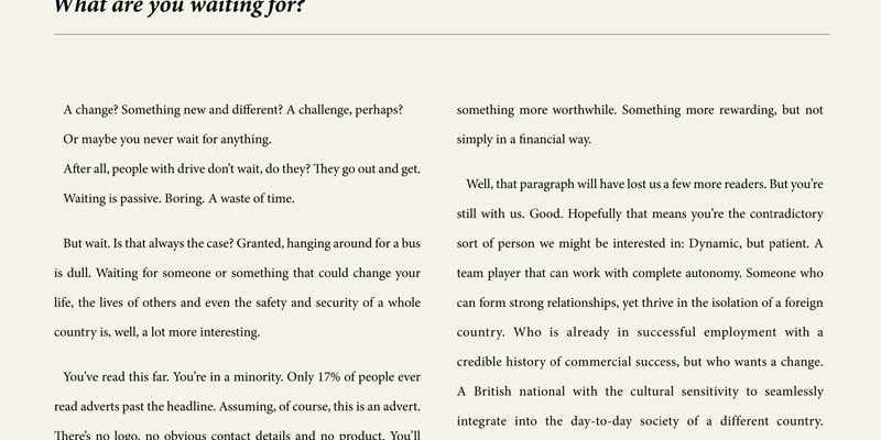 M&C Saatchi has created a long-copy print campaign for MI6 to attract new recruits.