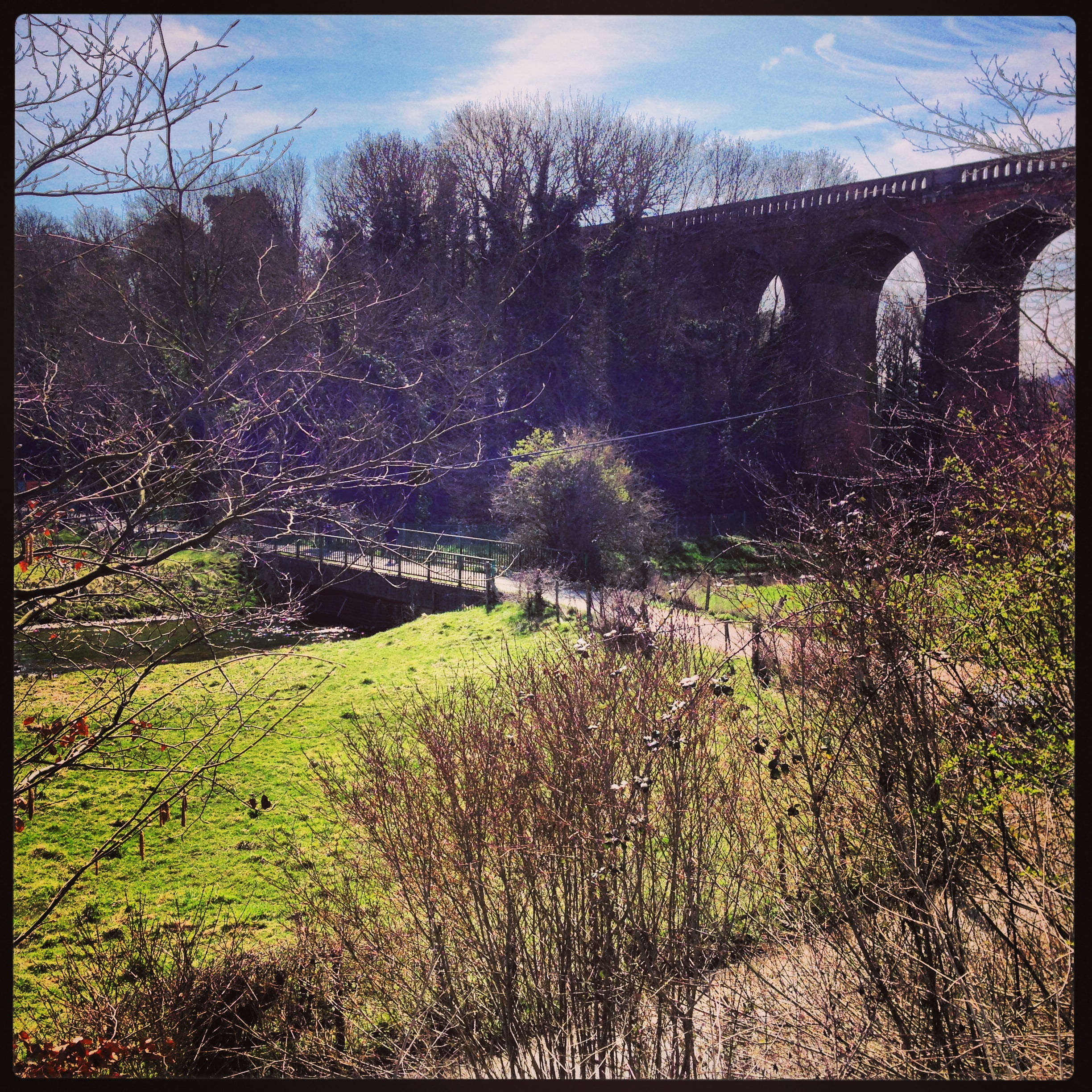 River Darent by an impressive 9-arch red-brick viaduct. @ Eagle Heights